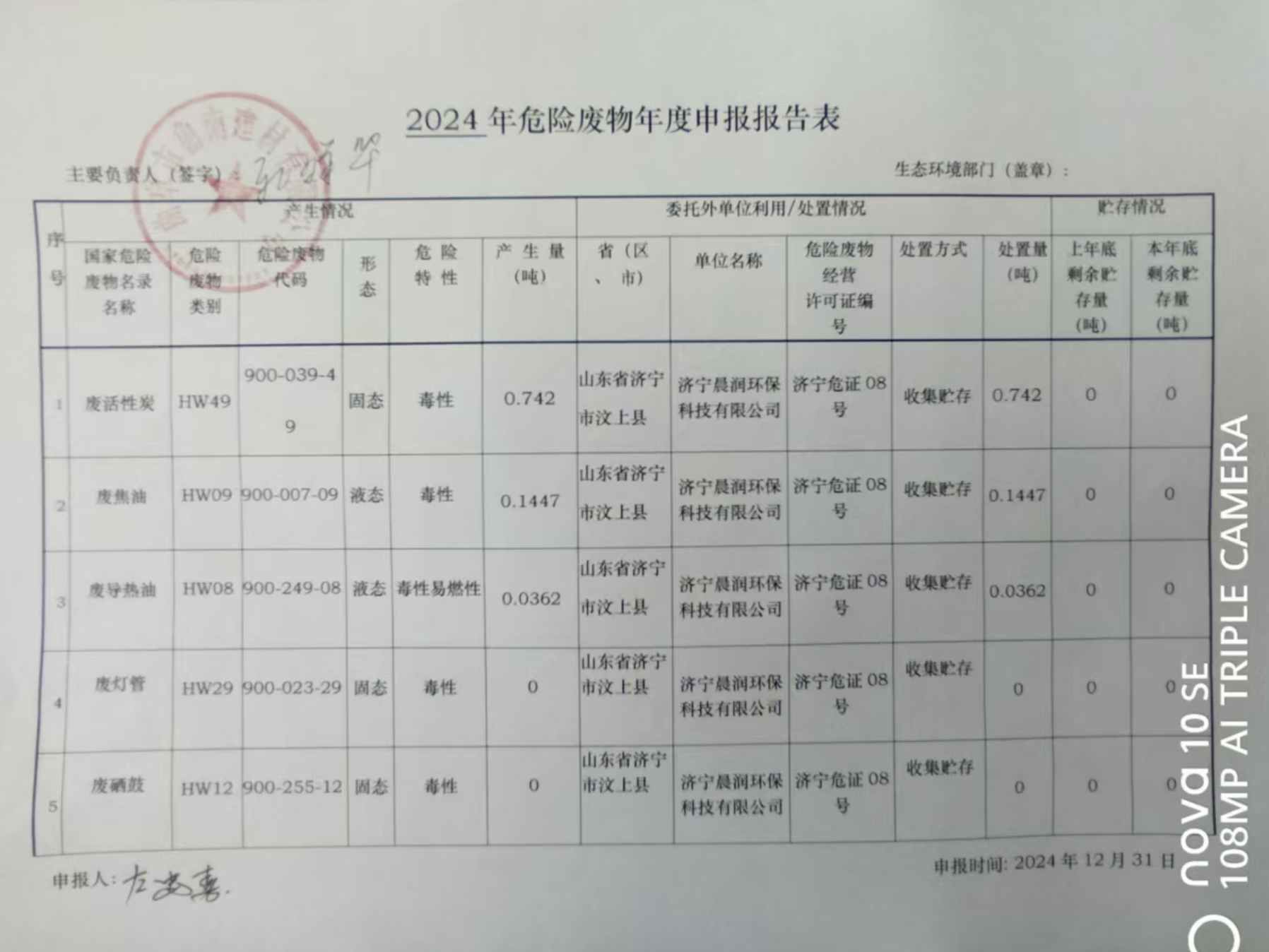 2024年危險(xiǎn)廢物年度申報(bào)報(bào)告表